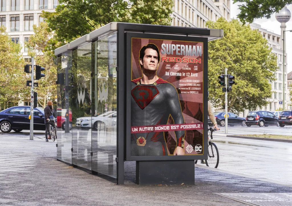 Création d’une affiche promotionnelle pour le film Superman: Red Son, réalisée à partir d’un photomontage du film Man of Steel et d’images Adobe Stock, pour créer une affiche d’inspiration propagande soviétique.