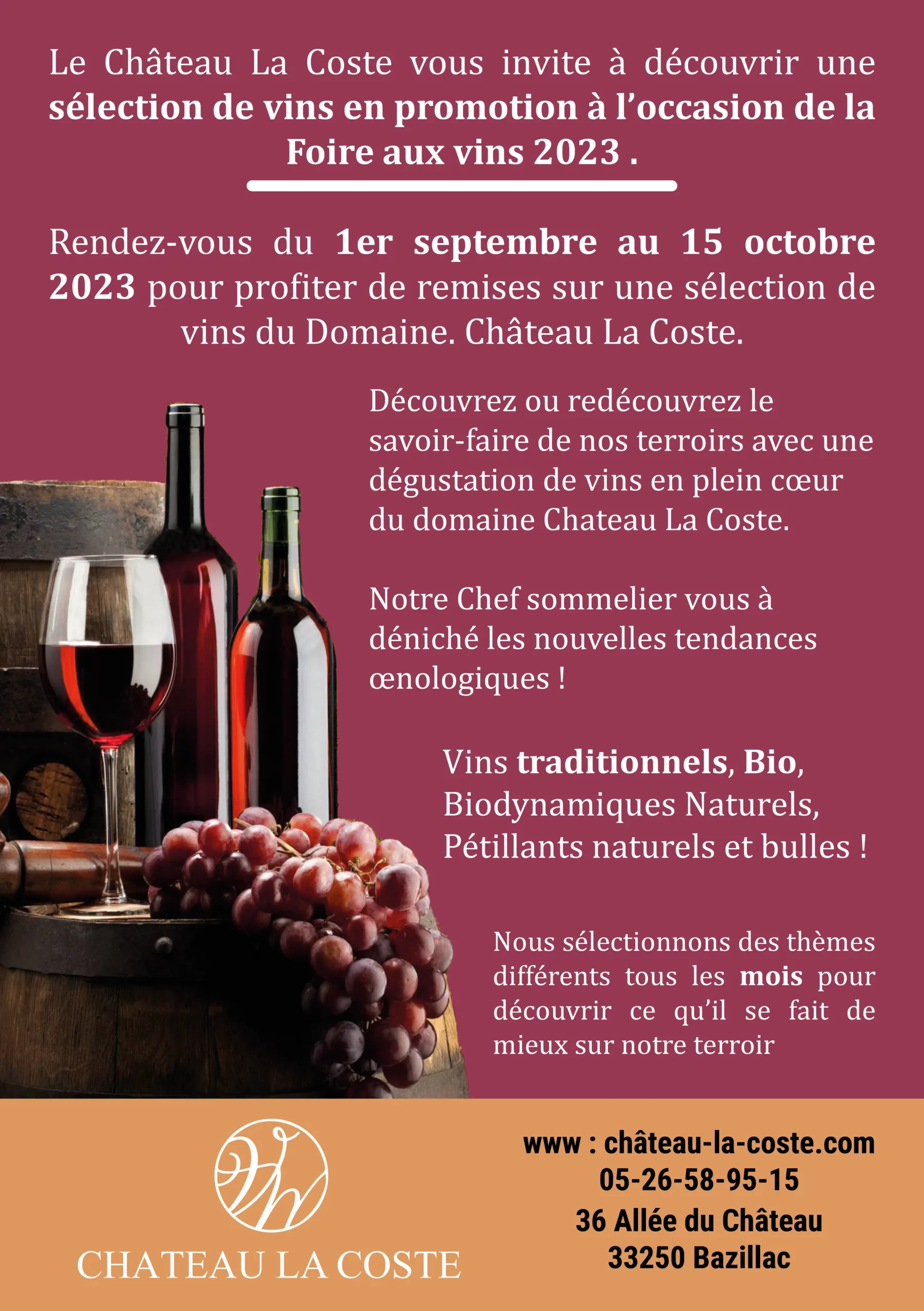 Conception d’un flyer promotionnel pour la foire aux vins du Château La Coste.