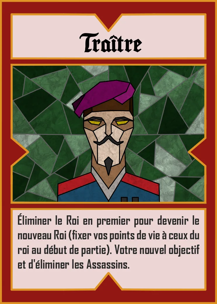 Création d’un set de cartes Magic: The Gathering pour un mode de jeu alternatif, le Shogun, où chaque carte représente l’un des cinq rôles secrets afin de fluidifier le déroulement du jeu.