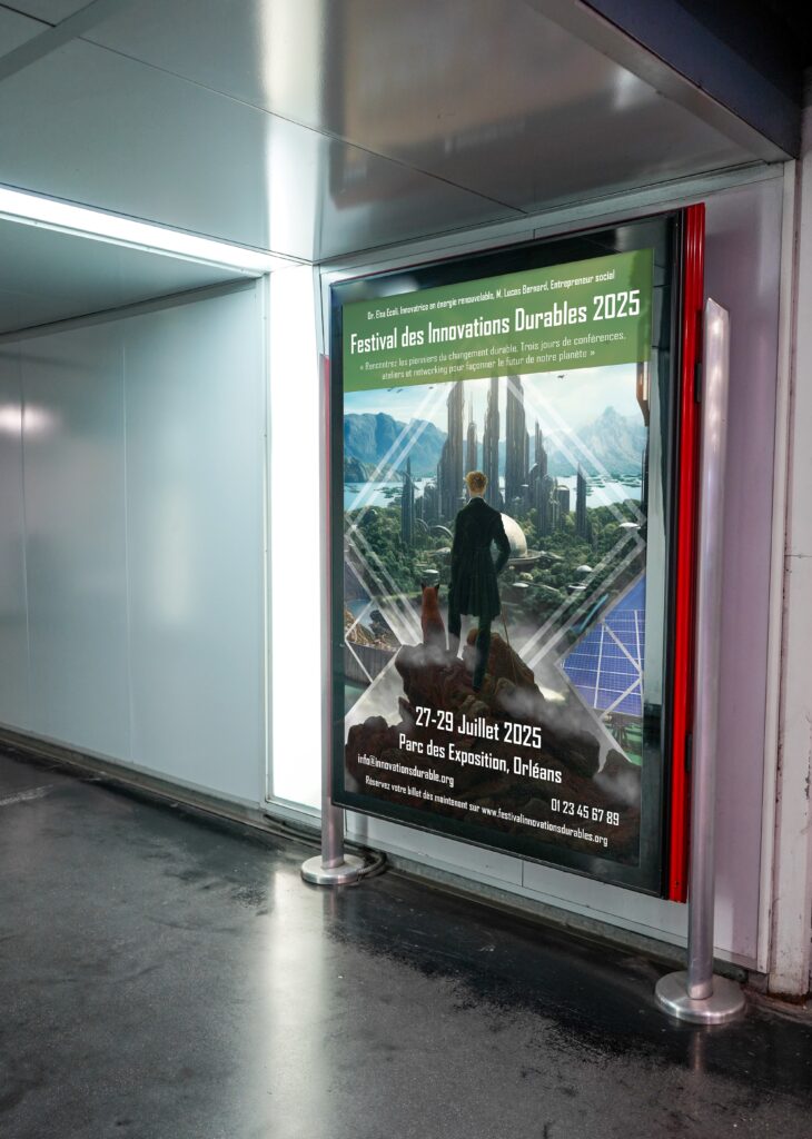 Création d’une affiche promotionnelle pour le Festival des innovations durables, inspirée de Le Vagabond de Bosch.