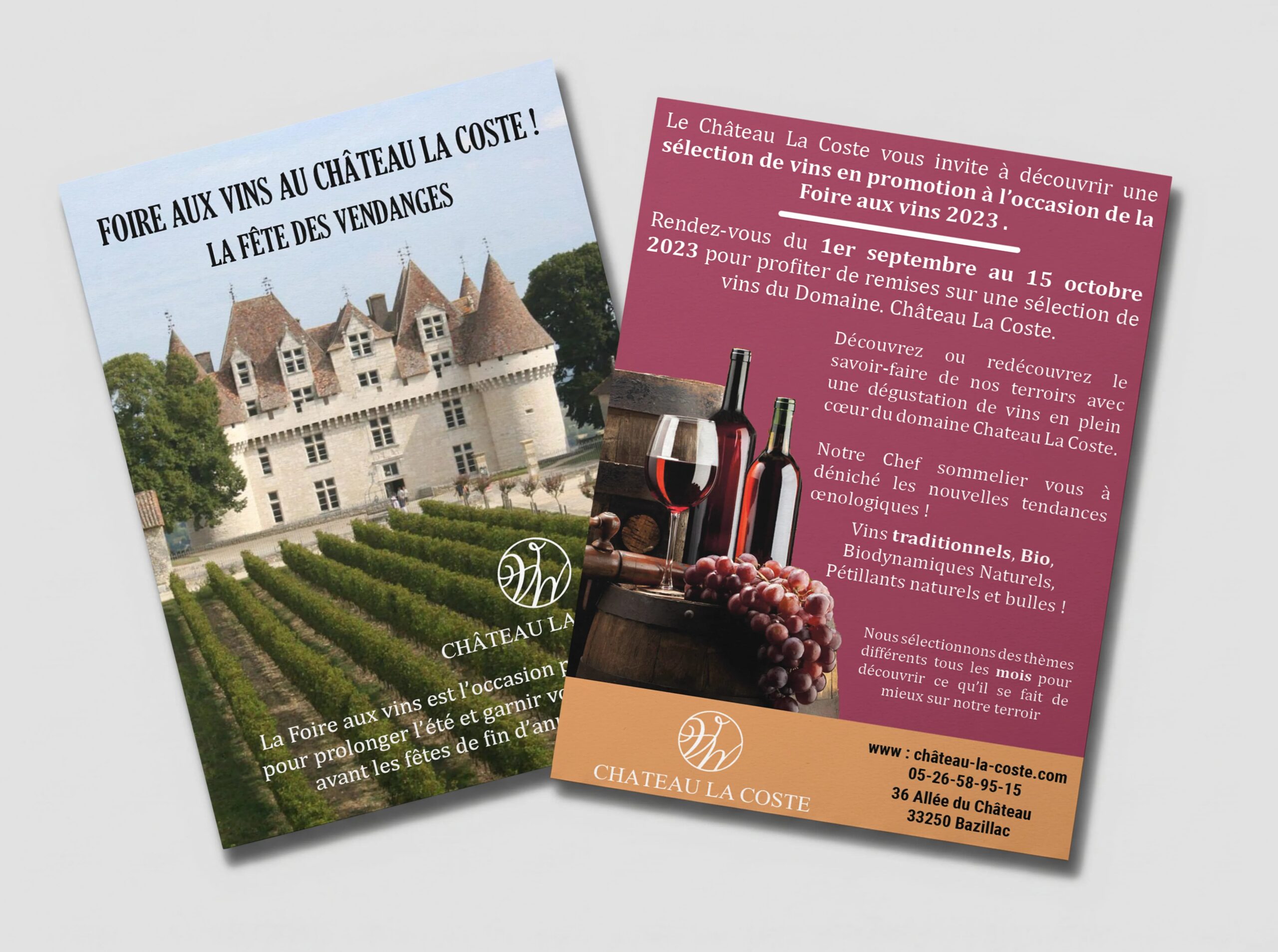Conception d’un flyer promotionnel pour la foire aux vins du Château La Coste.